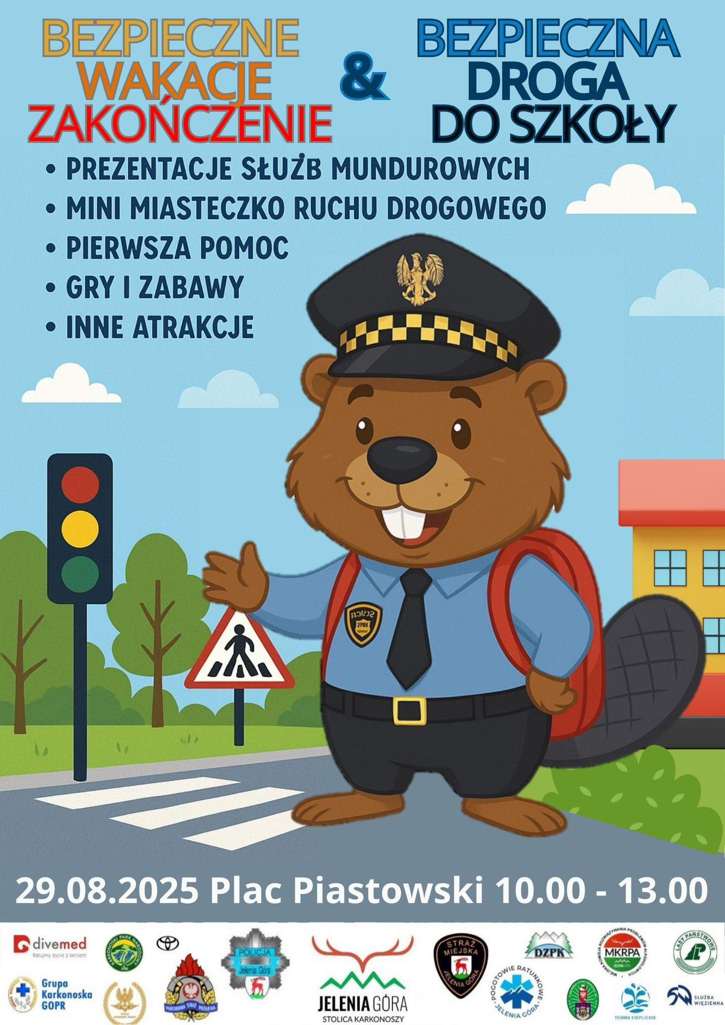 Miasto Jelenia Góra wraz ze Strażą Miejską zaprasza na wyjątkowe wydarzenie „Bezpieczne Wakacje – Zakończenie & Bezpieczna Droga do Szkoły”, które odbędzie się 29 sierpnia 2025 r. na Placu Piastowskim w godzinach 10:00–13:00.