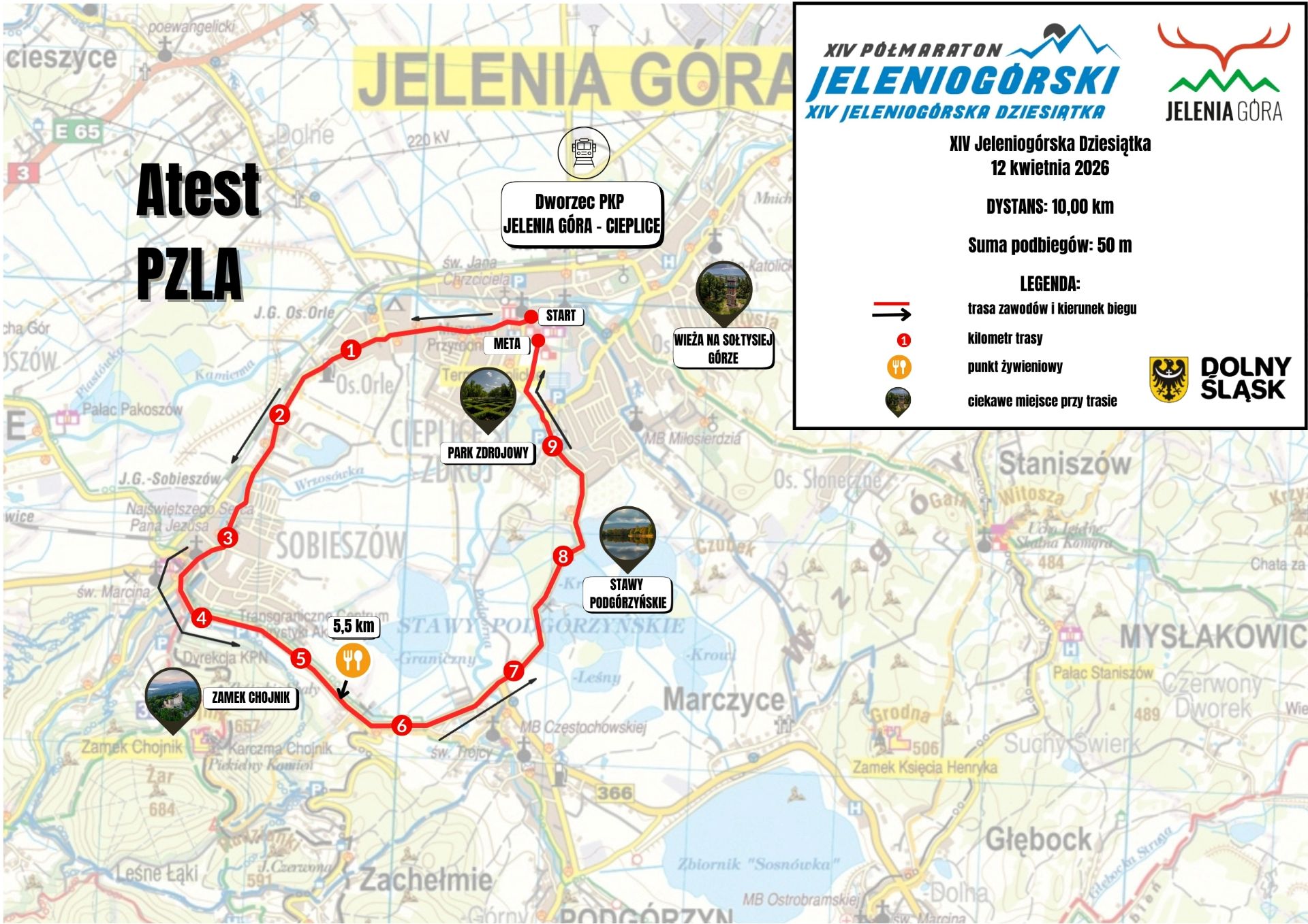 W związku z rozgrywanym 11 - 12 kwietnia 2026 r. w Jeleniej Górze i miejscowościach Zachełmie, Podgórzyn, Marczyce, Sosnówka, Staniszów Półmaratonem Jeleniogórskim 2026 wystąpią czasowe utrudnienia w ruchu na trasie biegu oraz skrzyżowaniach w obrębie trasy biegu.