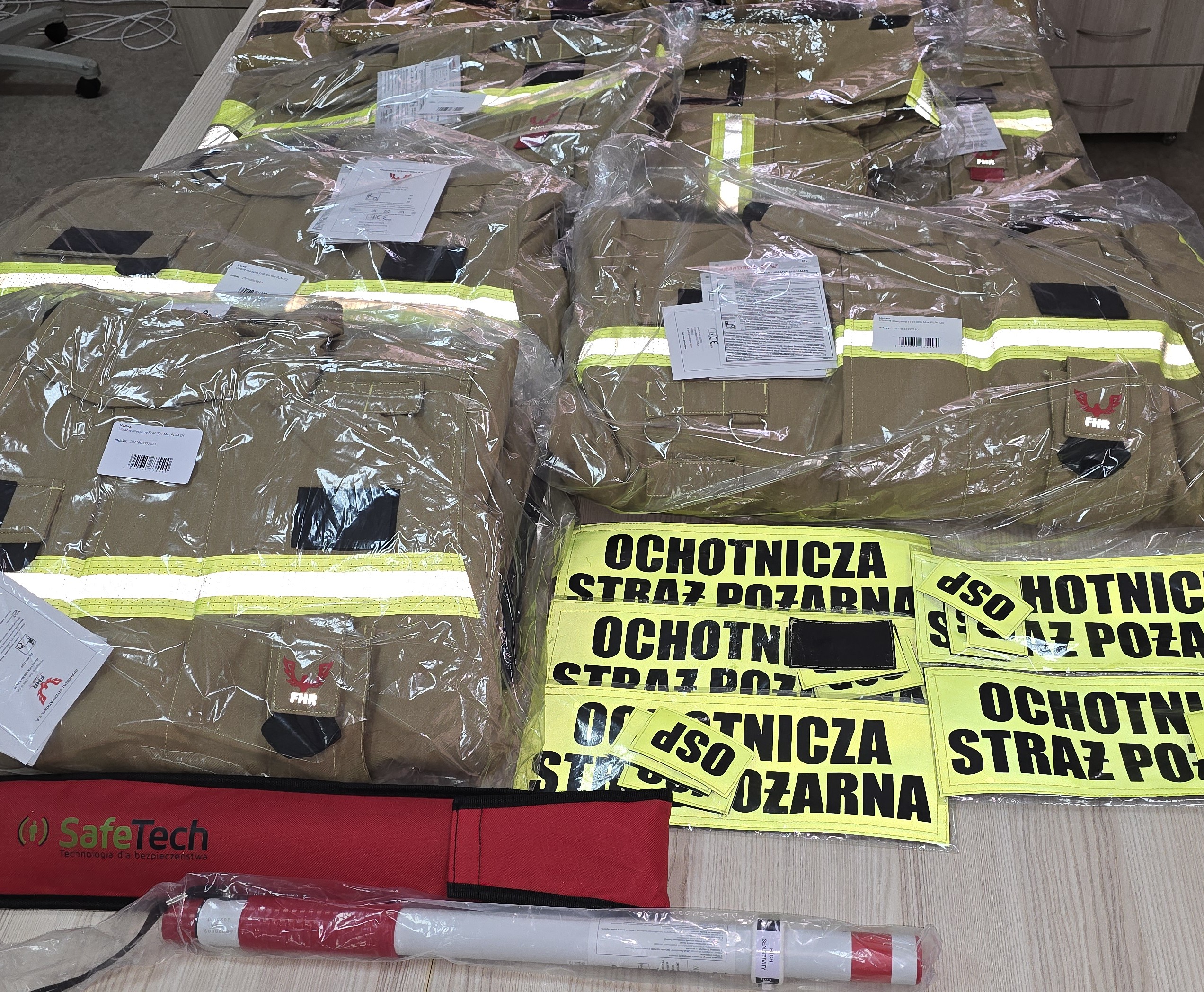 • OSP przy ul. Cieplickiej 168A otrzymała 3 komplety ubrań specjalnych, przeznaczonych do pracy w trudnych i niebezpiecznych warunkach,